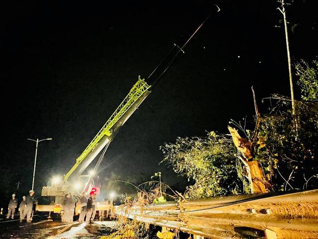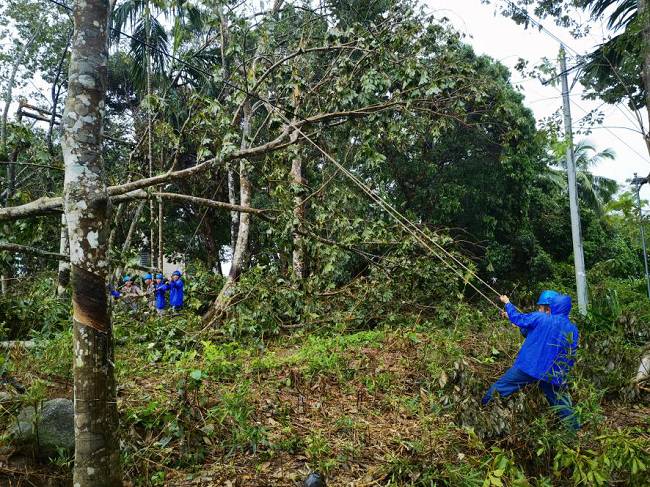 到達(dá)海南后,揭陽(yáng)明利綜合能源發(fā)展有限公司支援海南抗災(zāi)搶險(xiǎn)隊(duì)在澄邁縣緊鑼密鼓開(kāi)展搶修復(fù)電工作。澄邁地貌相對(duì)平整,但林區(qū)覆蓋率較高,橡膠林香蕉園廣泛分布,臺(tái)風(fēng)摩羯過(guò)境后,林區(qū)樹(shù)木倒塌壓垮電線(xiàn),線(xiàn)路損壞嚴(yán)重。為打通線(xiàn)路搶修通道,加快復(fù)電進(jìn)度,公司搶險(xiǎn)隊(duì)伍一邊組織大型施工機(jī)械快速重新組立電桿,一邊組織人員及時(shí)消缺搶修,力爭(zhēng)以最快速度恢復(fù)線(xiàn)路正常供電。